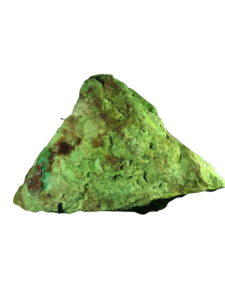Gaspeite typically appears in massive material, crusts, or veining rather than well formed crystals, and inclusions are common. Its crystal structure places it within a solid solution series that may include magnesium and iron, which can influence physical appearance and density. The mineral shows birefringence and a refractive index that may range from about 1.61 to 1.83 when measured with a refractometer. Effervescence may occur when exposed to hydrochloric acid, and some material may display weak fluorescence. On the Mohs hardness scale, gaspeite usually falls between 4.5 and 5.