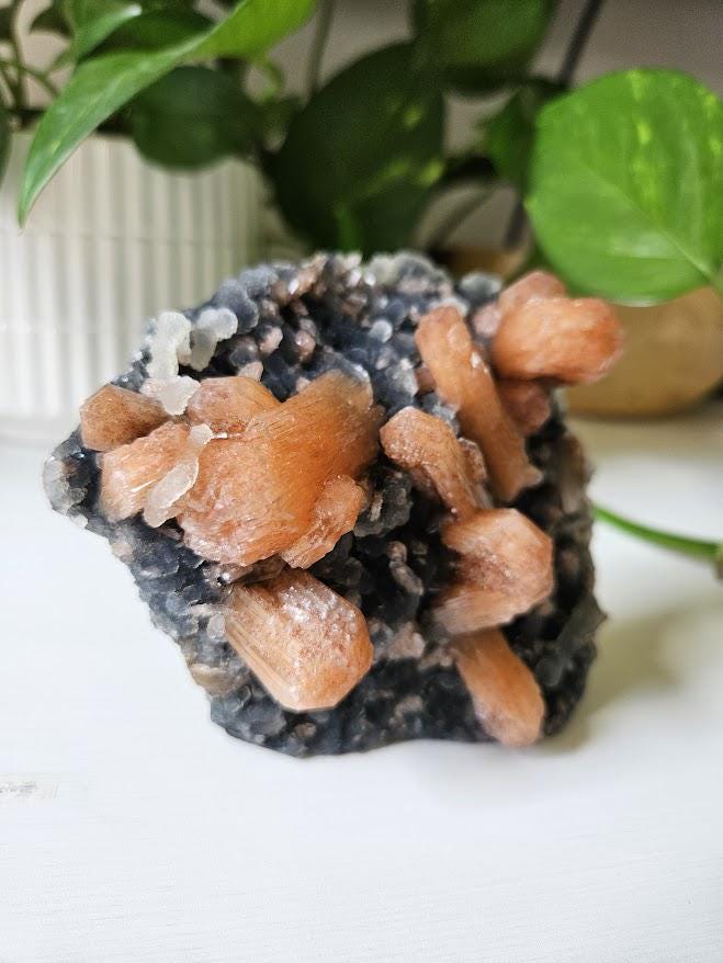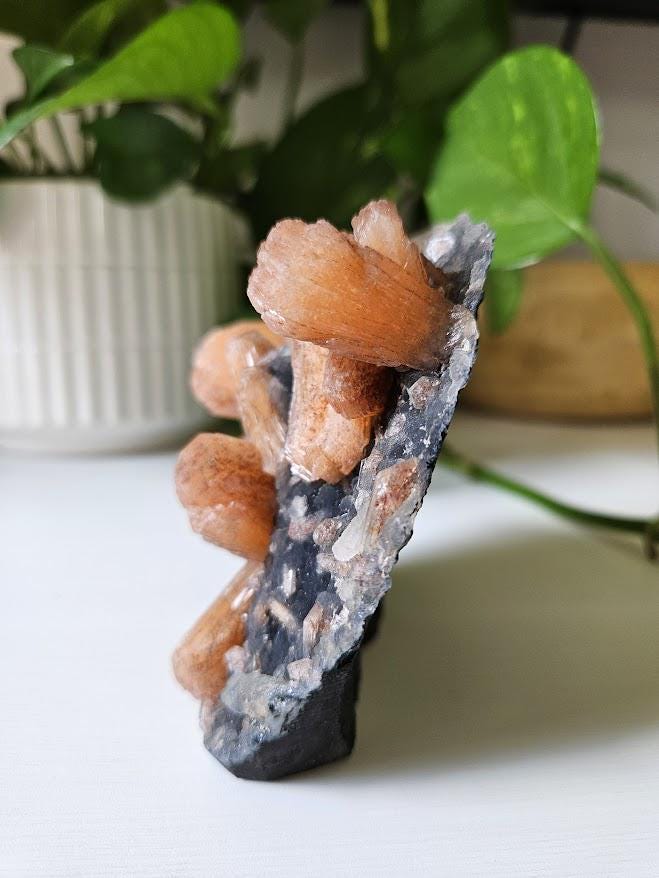 I absolutely love this piece! This stunning blue chalcedony crystal with orange stilbite comes from Maharashtra, India. Itโ€™s a beautiful natural standing cluster with a raw, vibrant appearance and wonderful quality โ€” truly one of my favorites! The sheen and quality are gorgeous! 💙🧡
