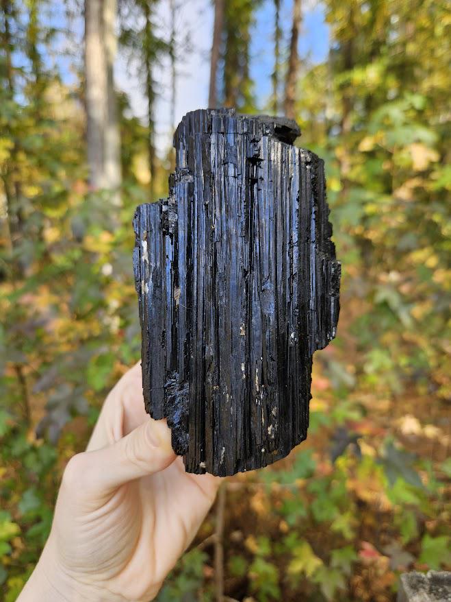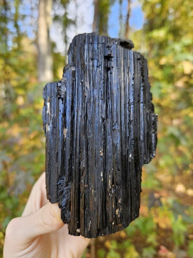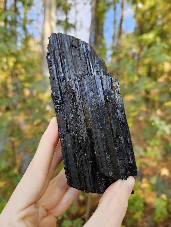 This is a beautiful raw black tourmaline crystal from Araçuaí, Brazil! It has a rich, deep black coloring and a lovely natural texture and shine. It’s a substantial and powerful piece — perfect for display, energy work, or crystal healing. I just love it! 🙂