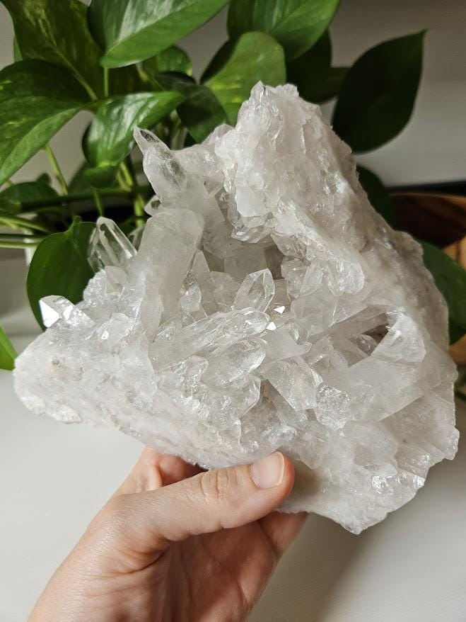 Please note: as with many large, raw crystals, this piece does have some natural imperfections. These add to its character and reflect its authenticity as a natural quartz cluster.
