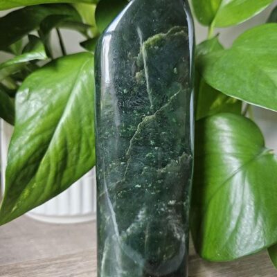 This is a beautiful Nephrite Jade freeform from Afghanistan! It displays a beautiful natural green hue and a smooth, polished surface that highlights its rich, earthy energy. The piece stands nicely on its own, making it a wonderful addition to any crystal collection or space that values grounding and harmony!