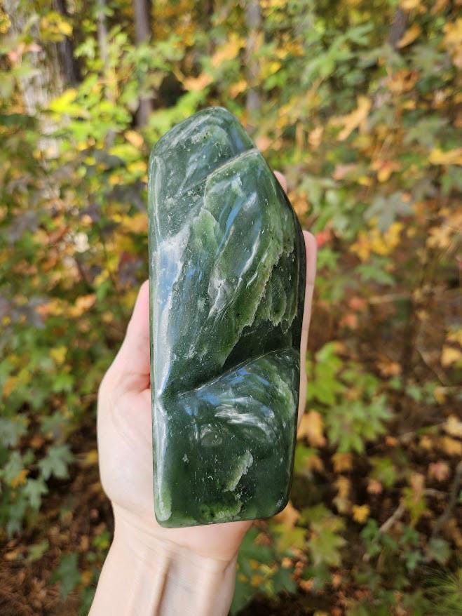 Large Nephrite Jade Freeform: Green Stone for Luck, Polished Jade Crystal