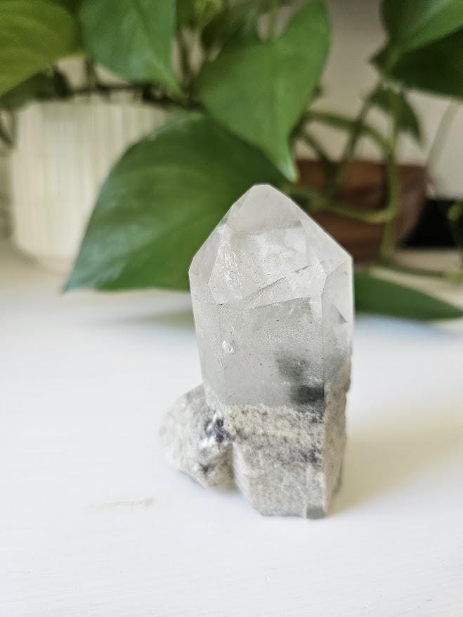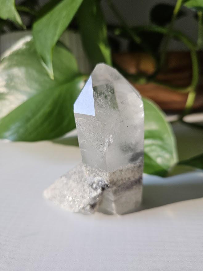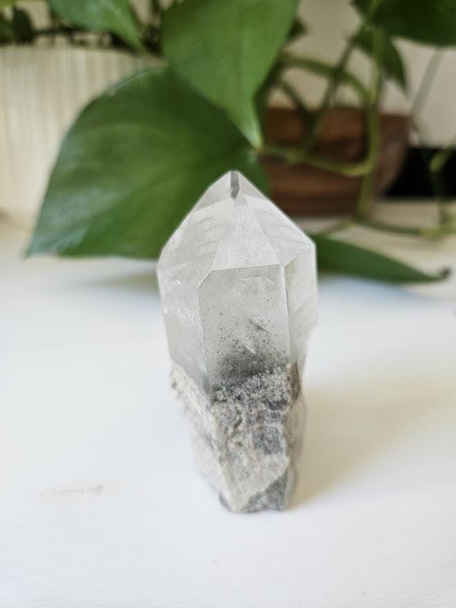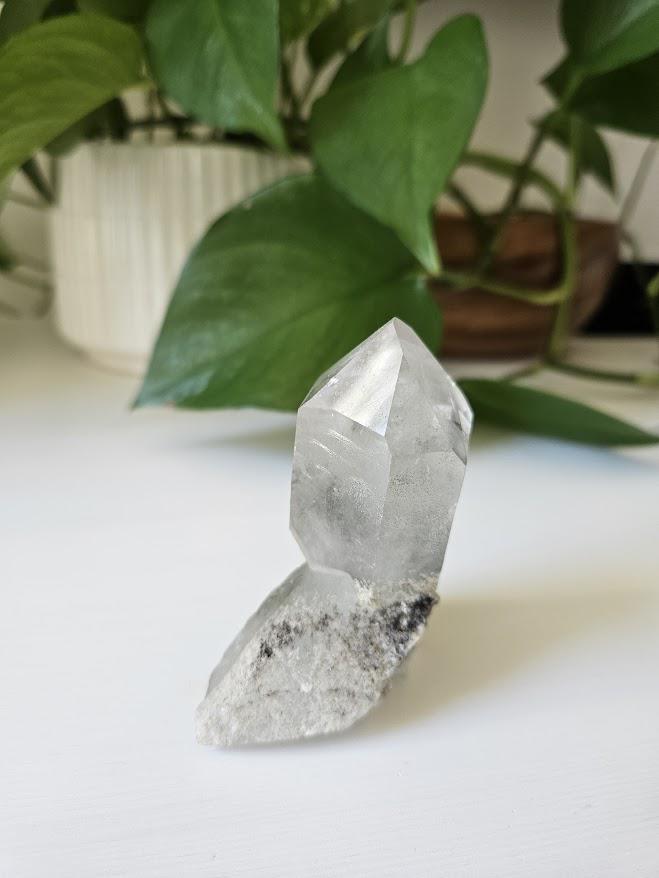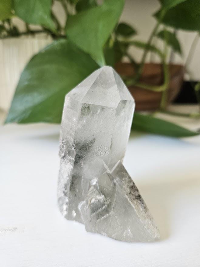 This is a lovely clear quartz crystal from Minas Gerais, Brazil! This piece has some nice clarity and some beautiful mineral inclusions. With these minerals, some often refer to this type of material as garden quartz or lodolite quartz. You will find that this piece is completely natural and is a raw crystal with some of its faces smoothed out. 🙂