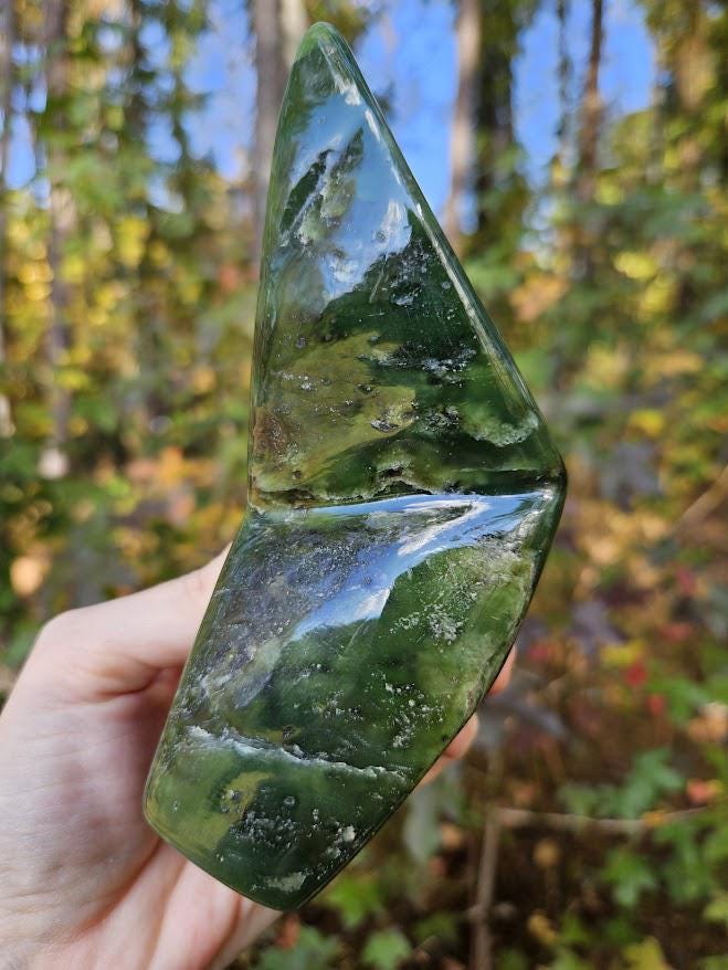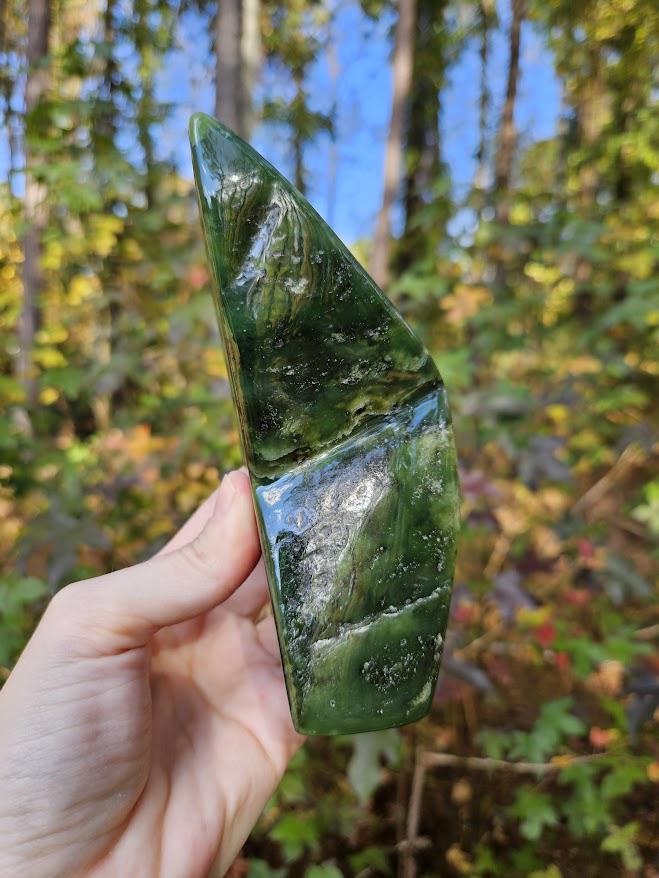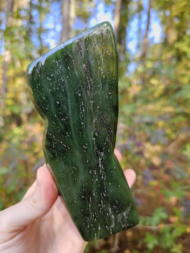 Nephrite Jade Freeform: Green Stone for Luck, Polished Jade Crystal