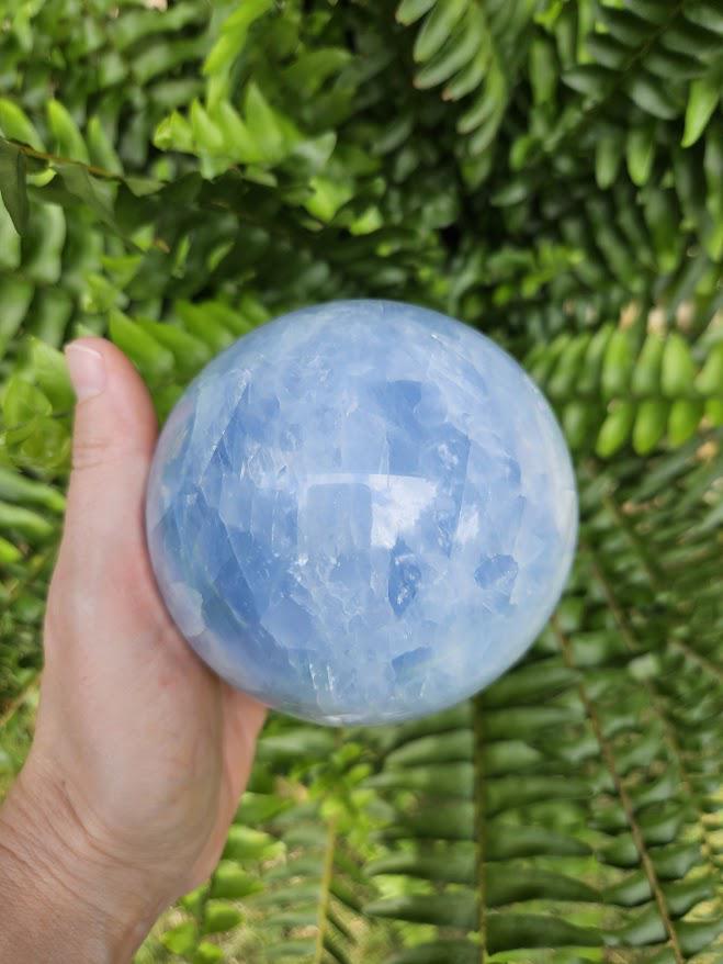 This polished blue calcite sphere, or what some people refer to as the crystal for peace, would make a wonderful gift or would be a great piece to add to any crystal collection! <3 This crystal blue calcite sphere measures: Weight: 2 pound 6 ounces Width: about 3.75 inches Height: about 3.75 inches As always, please review the measurements carefully! :) The quality blue calcite sphere you see in the pictures is the blue calcite crystal you will receive. Thank you so much for visiting my shop! <3
