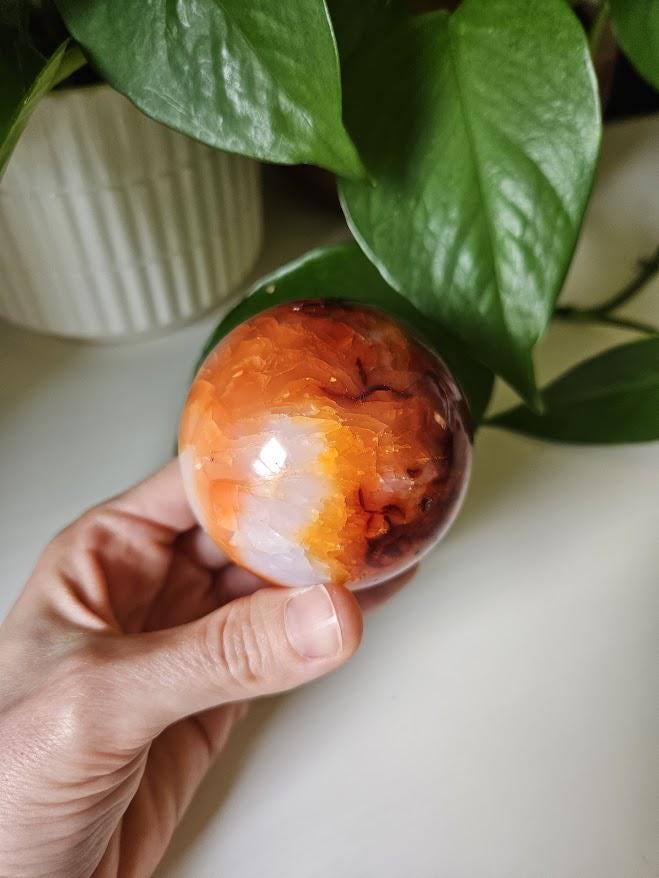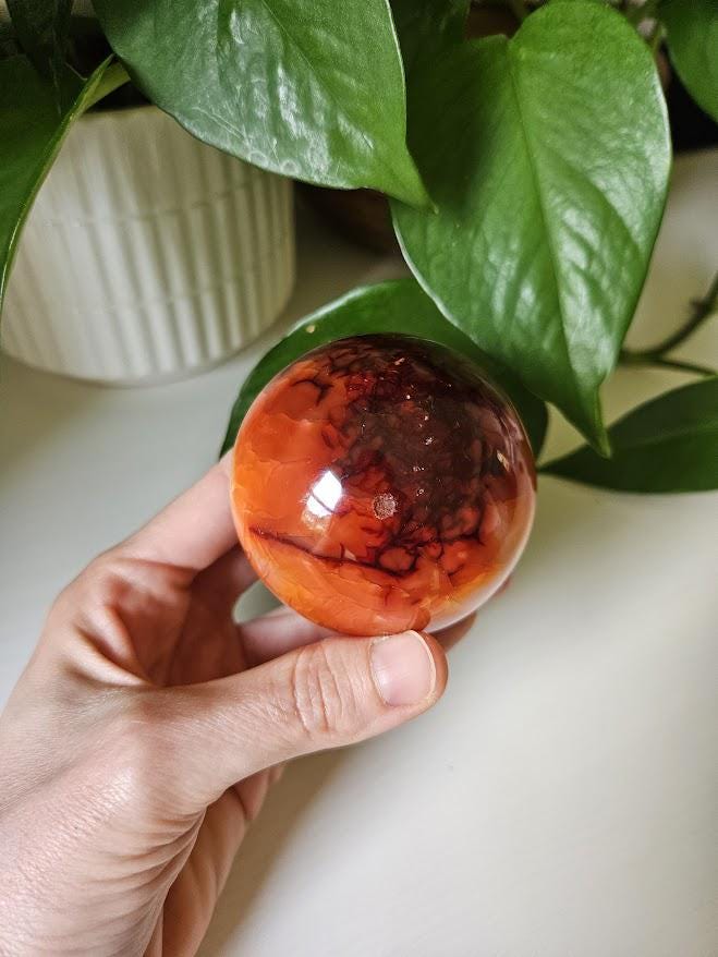 Polished Carnelian Sphere: Sacral Chakra Crystal, Madagascar