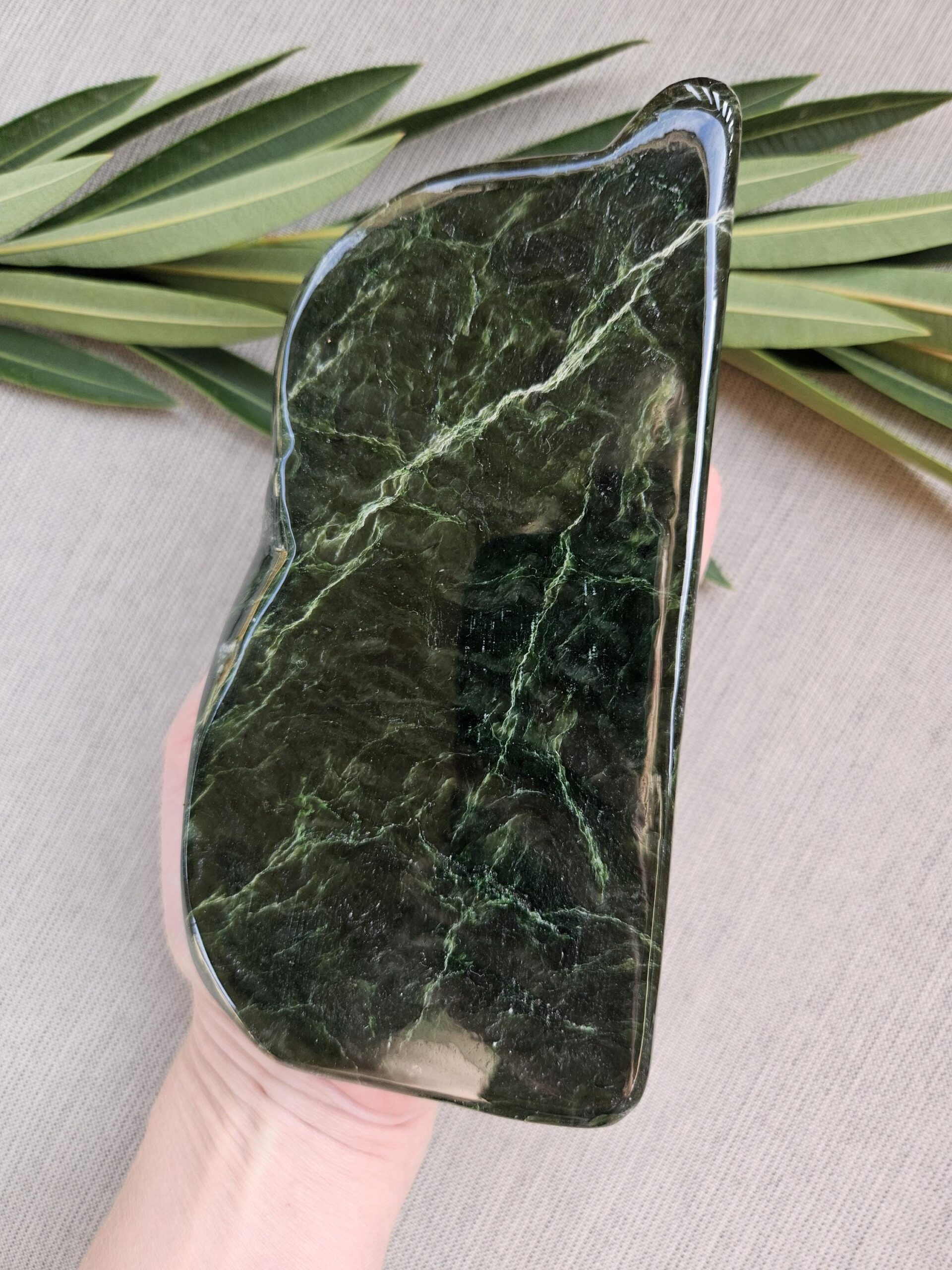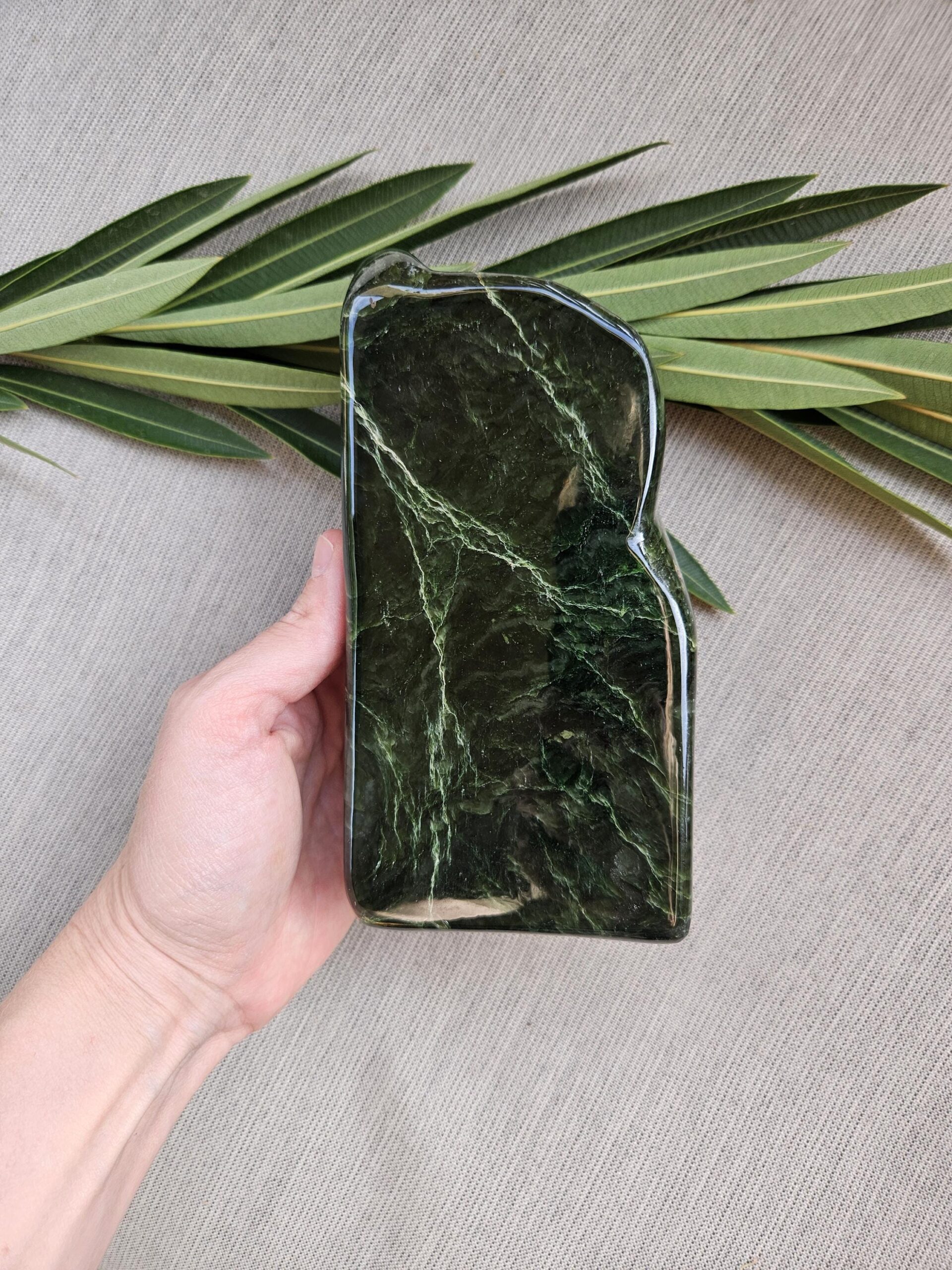 Polished Nephrite Jade Freeform: Green Stone for Luck