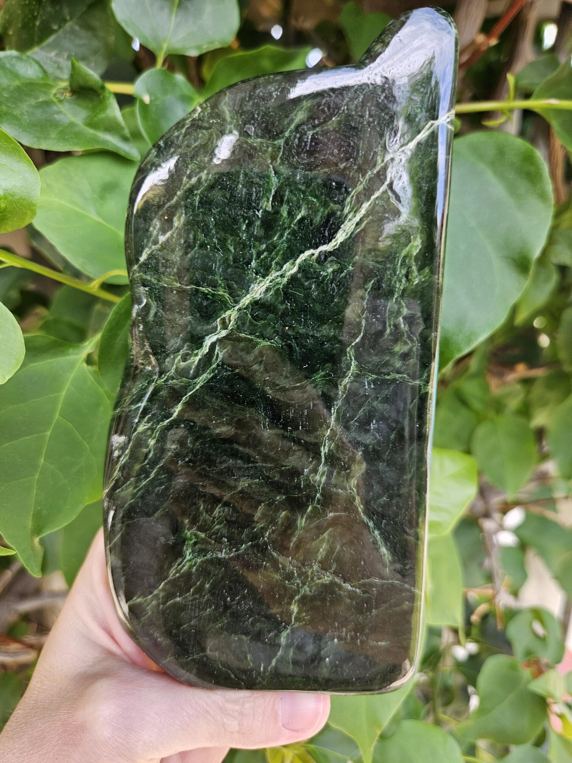 This jade stone, or what some people refer to as the stone for harmony or the abundance stone, would make a great gift for someone or would be a beautiful addition to any crystal or stone collection! Jade is one of the top stones for Taurus, Libra, Geminis and Aries! <3 This large jade freeform measures: Weight: 2 pounds 4.1 ounces Width: about 3 inches at its widest Height: about 6.25 inches *As always, please review the measurements carefully! :) **Be sure to check out all our freeforms here: https://www.etsy.com/shop/MoonlightGemsAZ?ref=seller-platform-mcnav§ion_id=35940379 The nephrite jade stone you see in the pictures is the quality jade freeform you will receive. Thank you so much for visiting my shop! <3