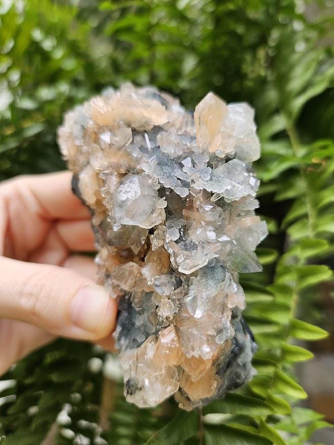Quality Apophyllite Crystal Cluster: Peach Stilbite & Blue Chalcedony, Nashik, India