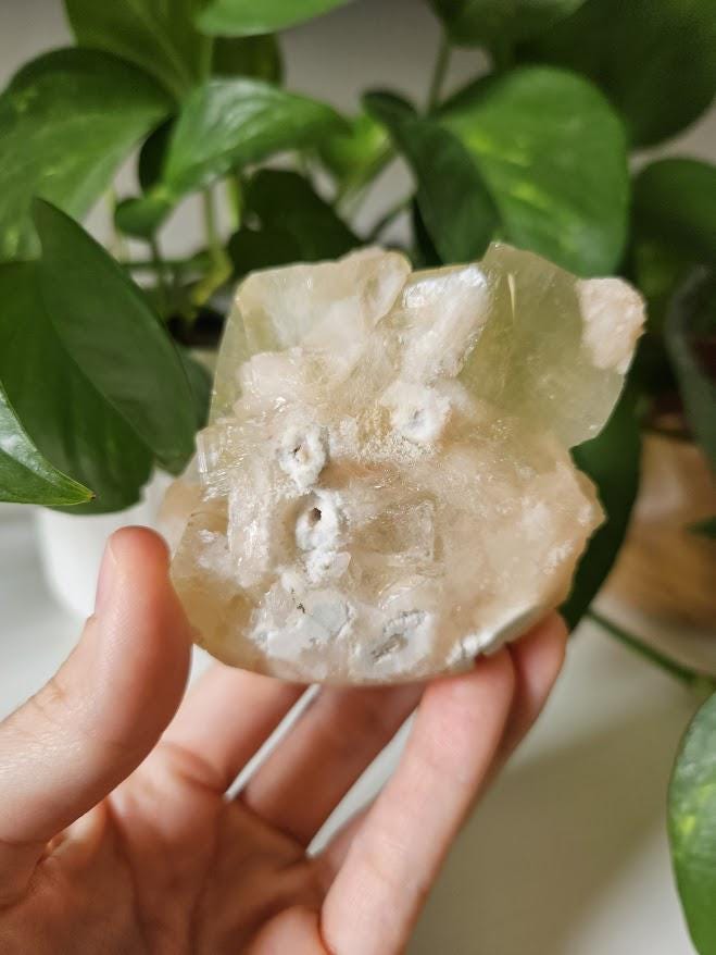 Green Apophyllite is often associated with uplifting energy, emotional clarity, and deep connection to the heart chakra. It is said to bring peace, joy, and a renewed sense of optimism. This crystal is also seen as a crystal for luck and prosperity!