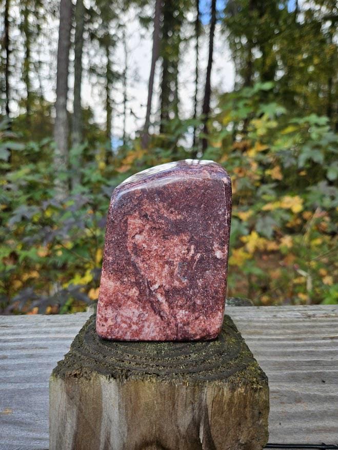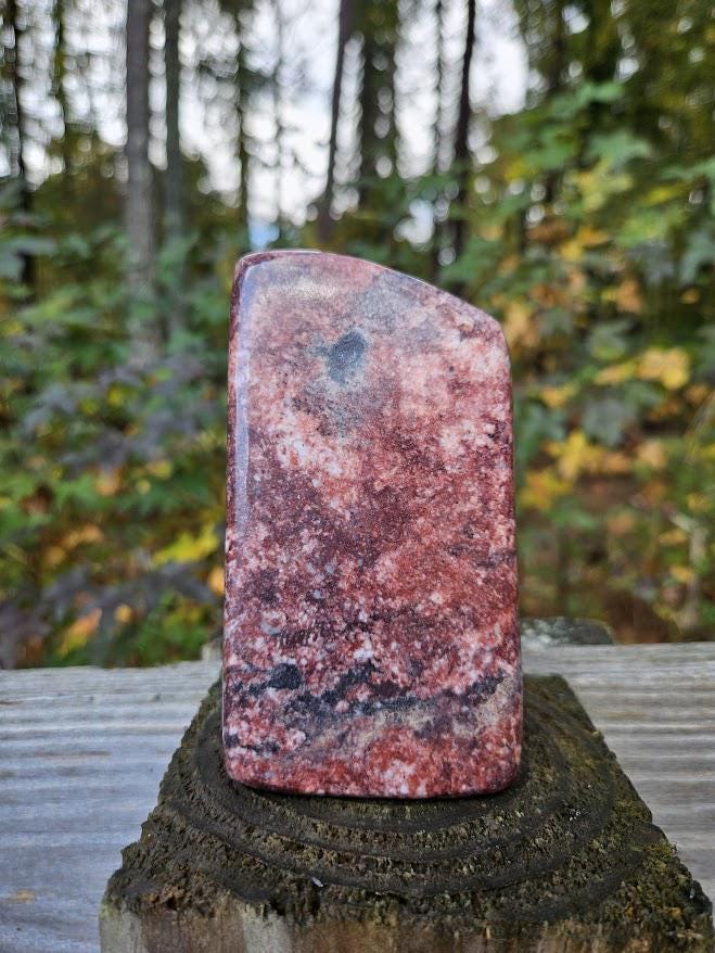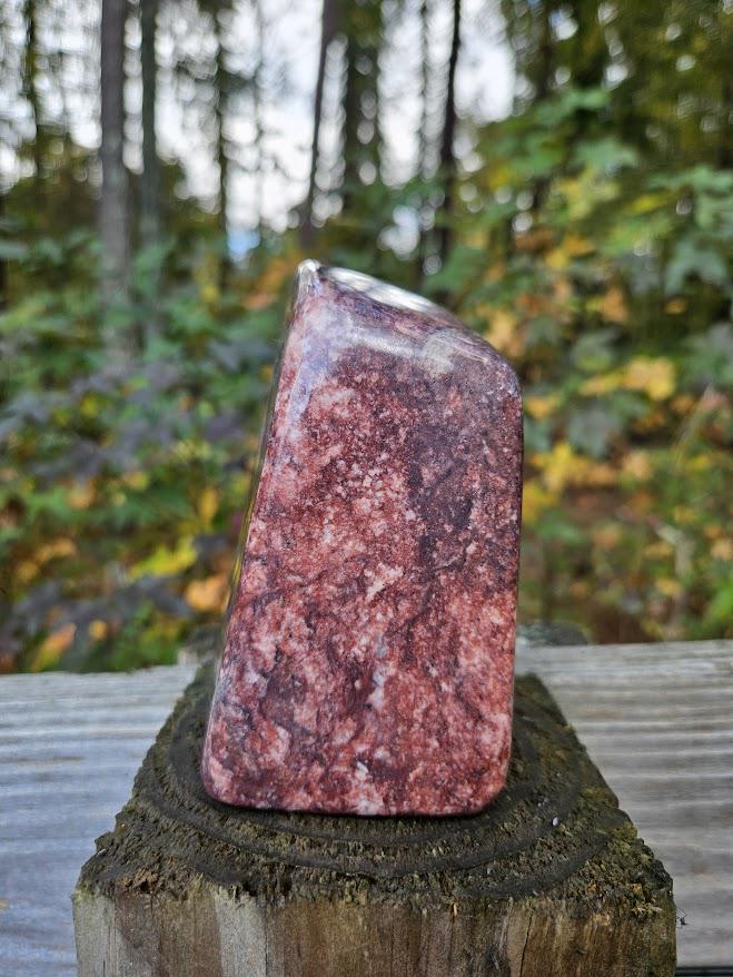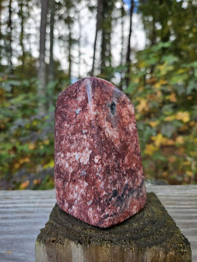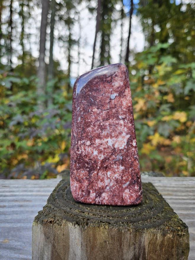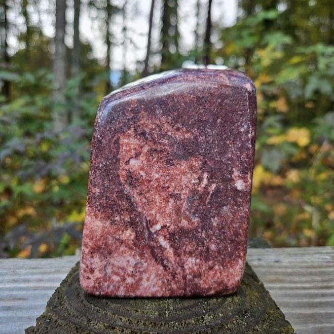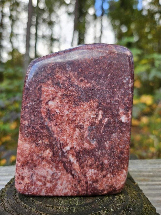 This is a beautifully polished Strawberry Jasper freeform from Afghanistan! It has rich natural color and a smooth surface with lovely earthy patterns. The piece is large, solid, and feels very grounding to hold. It is stunning! I just love this batch – the quality is very nice!