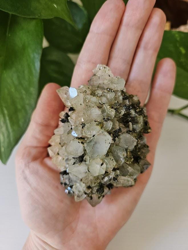 These beautiful Epidote and Quartz specimens come from Hakkari, Turkey, a region known for producing energetically radiant and high-vibration stones. Each piece in this collection is quality, natural, and full of unique character — some rich in shimmering quartz, others glowing with deep green epidote, and all a stunning mix of both!