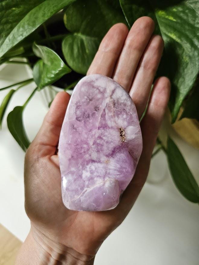 Pink aragonite is a rare and soothing stone that radiates calming, heart-centered energy. This piece has a gentle yet grounding vibration, making it perfect for meditation, energy work, or simply as a lovely display piece.