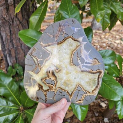 Septarian are found in sedimentary rocks from all around the world. As long as there’s water, calcium-rich mud and what’s known as bentonite mud, you can find it, usually 20+ feet beneath the ground. This stone is primarily mined in the United States, mainly Utah, as well as Morocco, Madagascar, the United Kingdom as well as New Zealand.