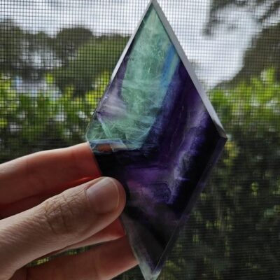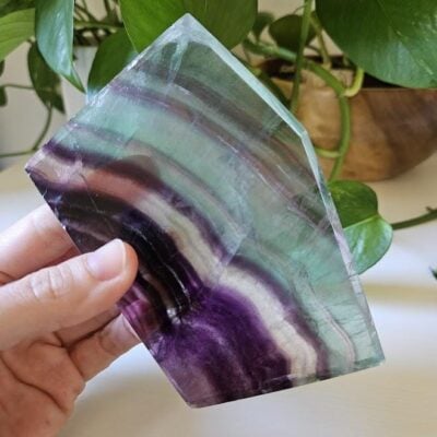 Fluorite, sometimes referred to as Fluorspar, comes in a variety of colors, ranging from colorless to a transparent purple, green, yellow, blue pink and/or black. While purple and green tend to be the most common color available, fluorite can be found naturally in almost every color. Some can even be banded, displaying a variety of colors, often resembling that of a rainbow pattern. If the fluorite is colorless, this simply means it’s pure fluorite; however, if it contains any impurities or has undergone any type of irradiation, the colors can widely vary.
